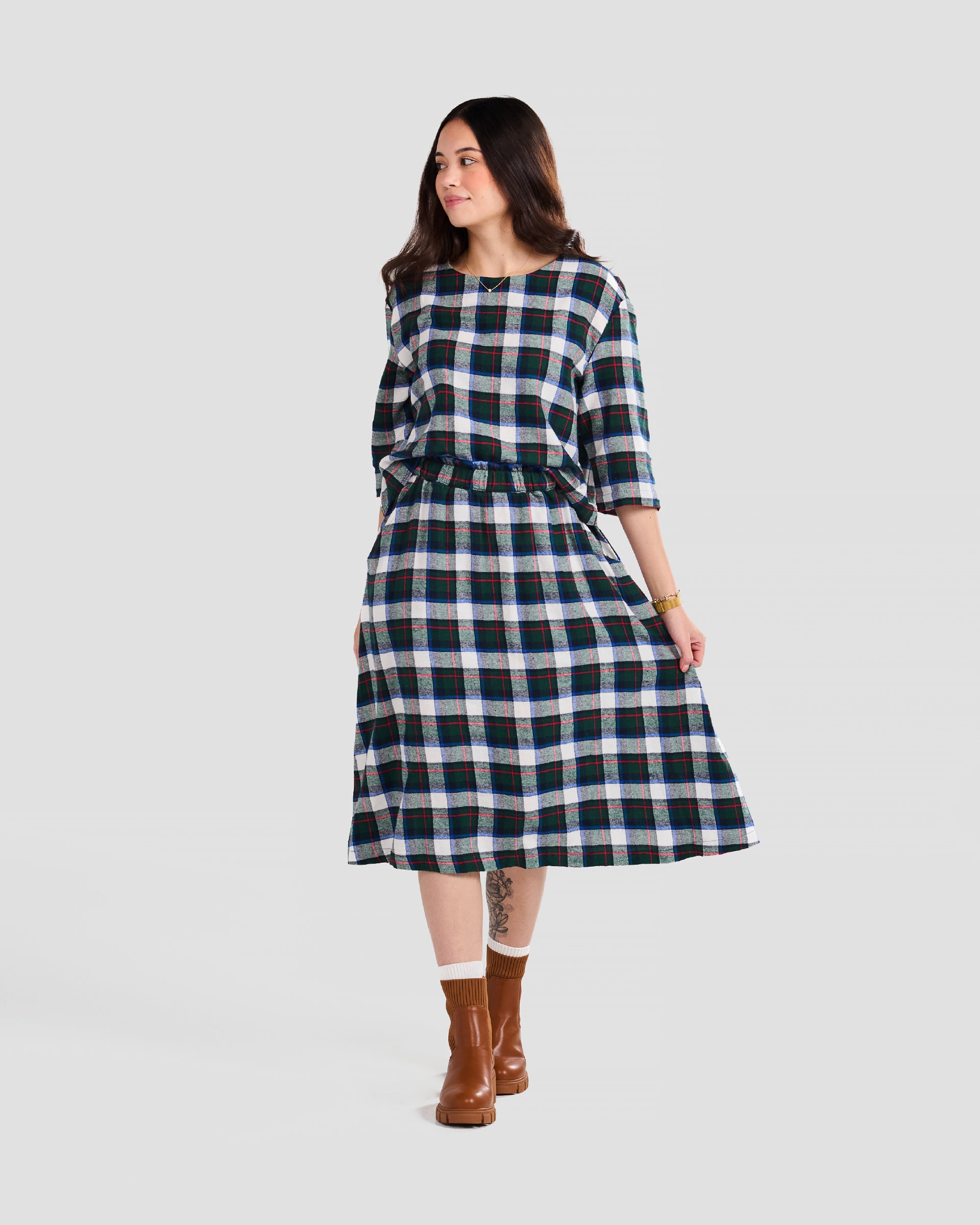 Discover our Women's Atlin Flannel Plaid Midi Pocket Skirt, crafted from a super cozy 100% Cotton Flannel.
